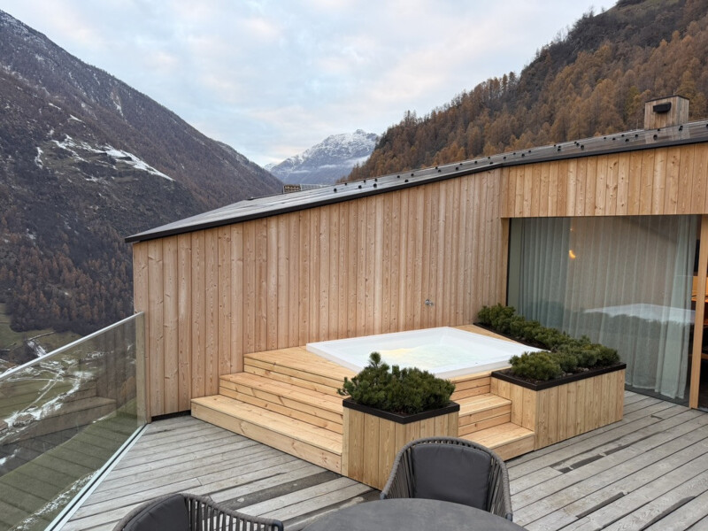 Unser Whirlpool wird bei jeder Nutzung mit frischem Berg-Quellwasser gefüllt – bitte gehen Sie achtsam damit um und vermeiden Sie unnötige Wasserverluste.